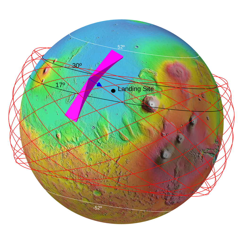 图 天问三号火星全球多色相机成像示意图。图中黑点仅为示意,不代表真实着陆区