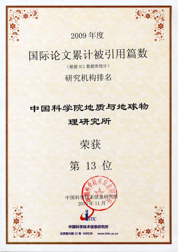 我所钱青副研究员等人2009年发表在International Journal of Earth Sciences期刊上的一篇论文被评选为“2009年中国百篇最具影响国际学术论文”(图1)。此外,我所在“2009年度表现不俗的中国论文”科研机构类别中排名第九(图2)、在“2009年度国内论文被引用次数”科研机构类别中排名第三(图3)、在“2009年度国际论文累计被引用篇数”科研机构类别中排名第13位(图4)。