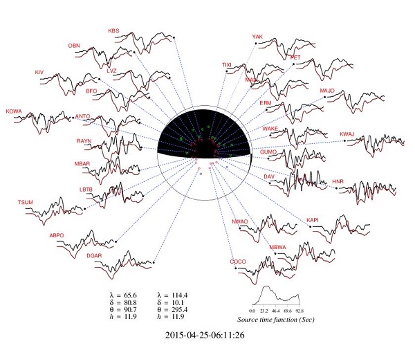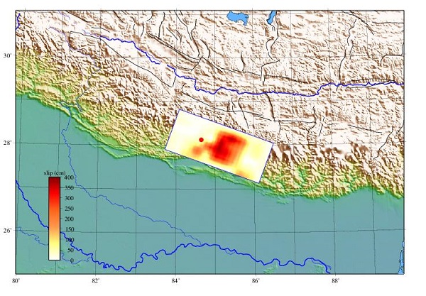 Fig.1 Focal mechanism of the Mw7.9 earthquake, Nepal
