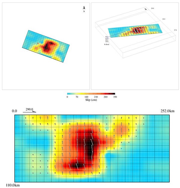 Fig.4 The map shows the projection of slip distribution on the ground