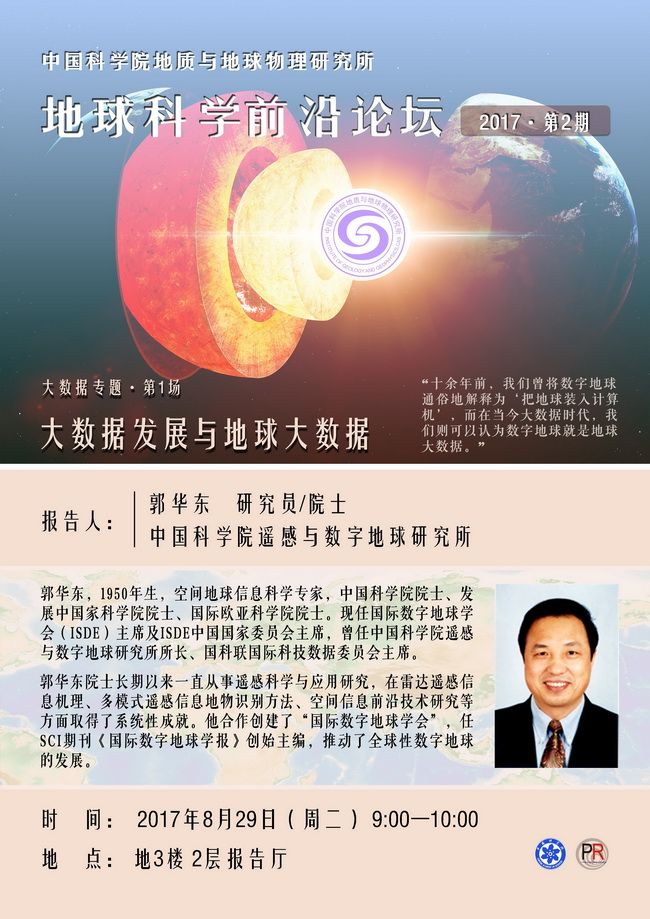 【8.29】地球科学前沿论坛2:郭华东 研究员/院士