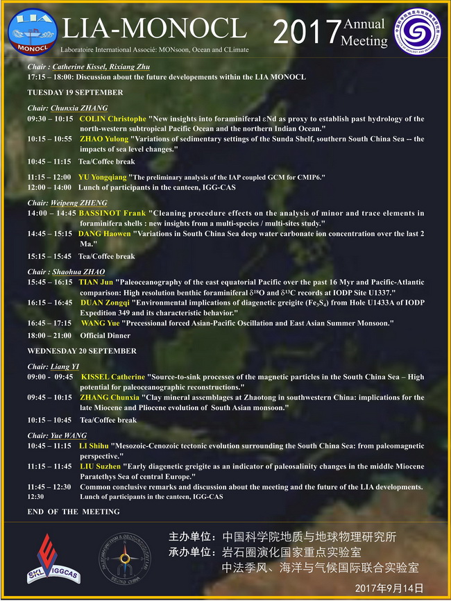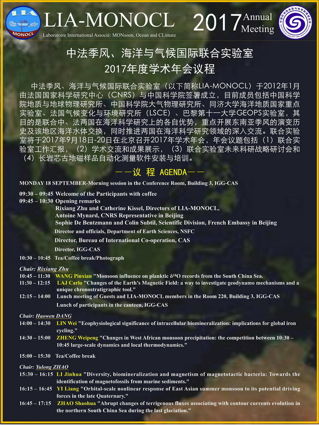 【9.18-9.20】中法季风、海洋与气候国际联合实验室2017年度学术年会
