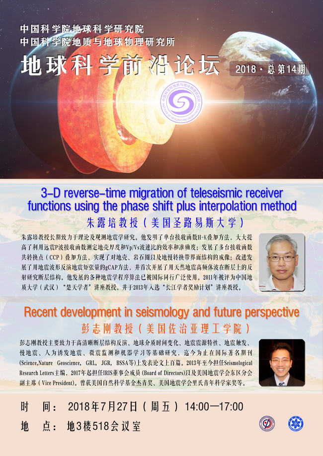 【7.27】地球科学前沿论坛:朱露培 教授、彭志刚 教授