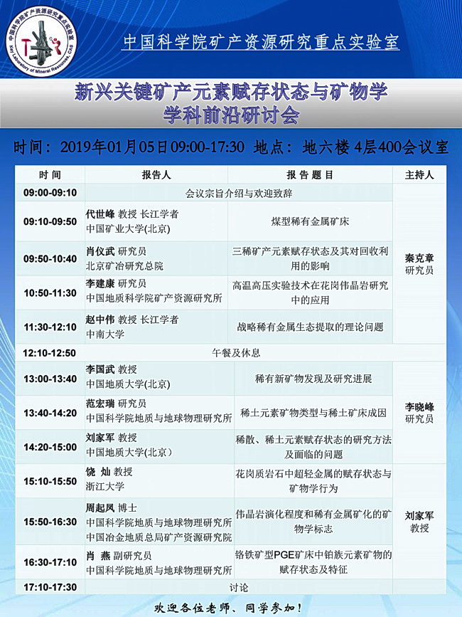 【1.5】矿产室:新兴关键矿产元素赋存状态与矿物学科前沿研讨会日程