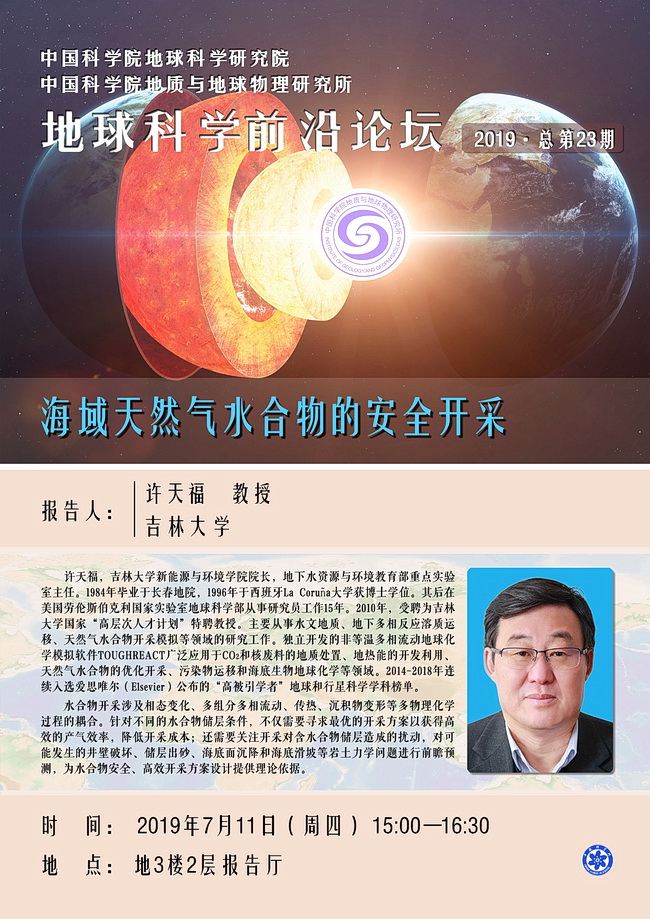 【7.11】地球科学前沿论坛:许天福 教授