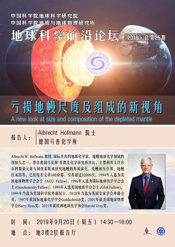 【9.20】地球科学前沿论坛:Albrecht Hofmann 院士