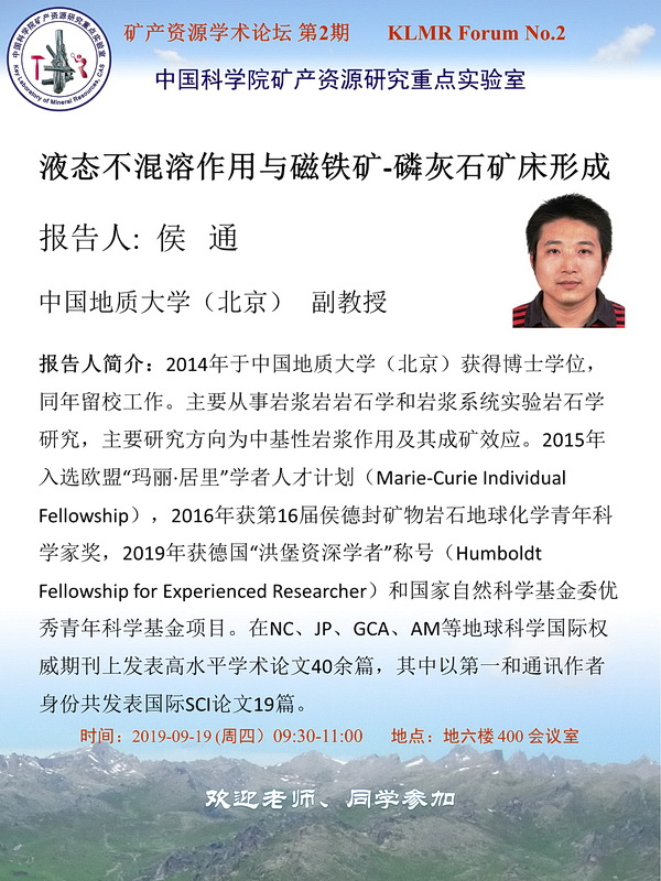 【9.19】矿产资源学术论坛·第2期:侯通 副教授
