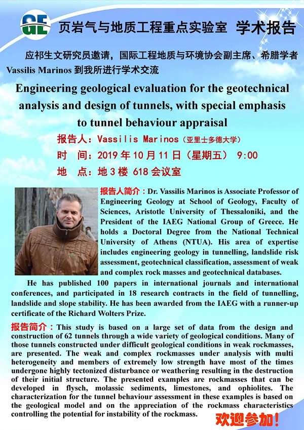 【10.11】工程室学术报告:Vassilis Marinos 博士