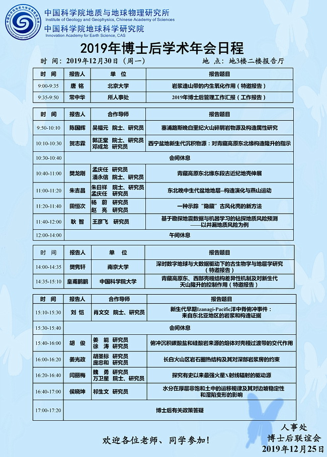 【12.30】2019年博士后学术年会特邀报告:唐铭 樊隽轩 皇甫鹏鹏