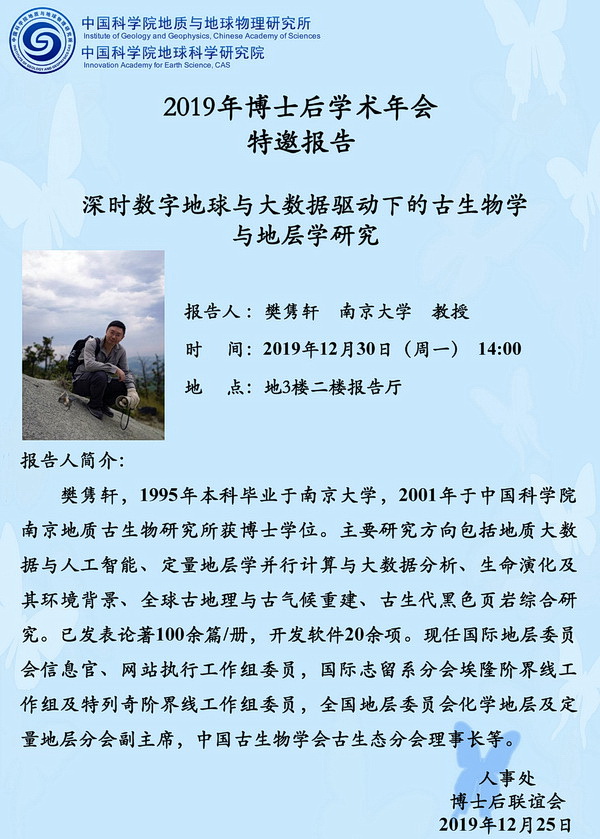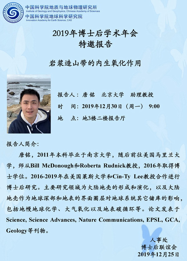 【12.30】2019年博士后学术年会特邀报告:唐铭 樊隽轩 皇甫鹏鹏
