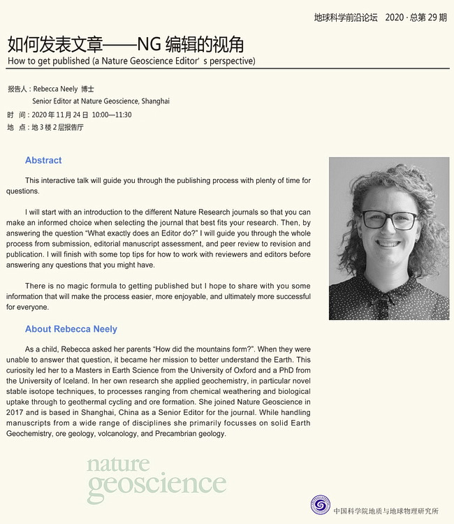 报告取消——【11.24】地球科学前沿论坛:如何发表文章——NG编辑的视角