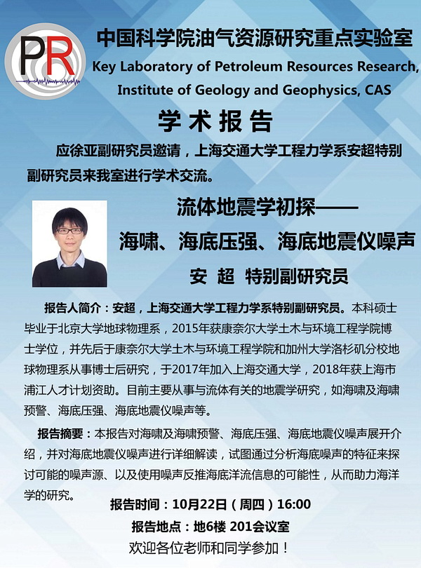 【10.22】油气室学术报告:安超 特别副研究员