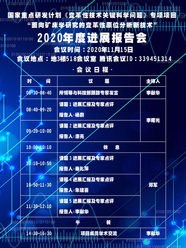 【11.15】“面向矿床学研究的变革性原位分析新技术”项目2020年度进展报告会