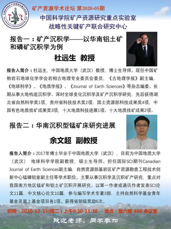 【12.15】矿产资源学术论坛:杜远生 余文超