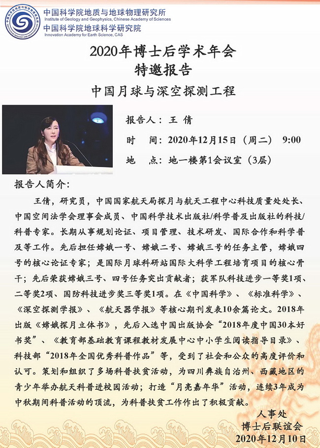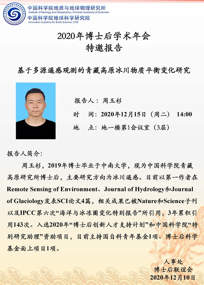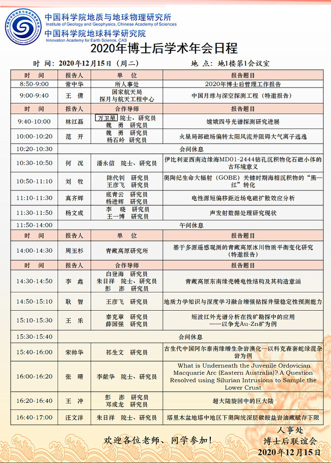 【12.15】2020年博士后学术年会报告日程(特邀报告王倩、周玉杉)