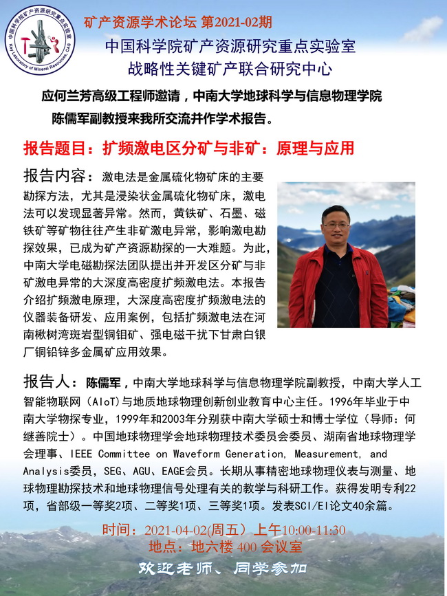 【4.2】矿产资源学术论坛:陈儒军 副教授