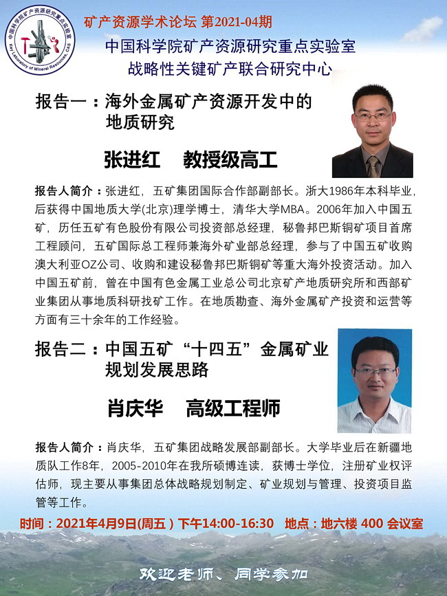 【4.9】矿产资源学术论坛:张进红 肖庆华