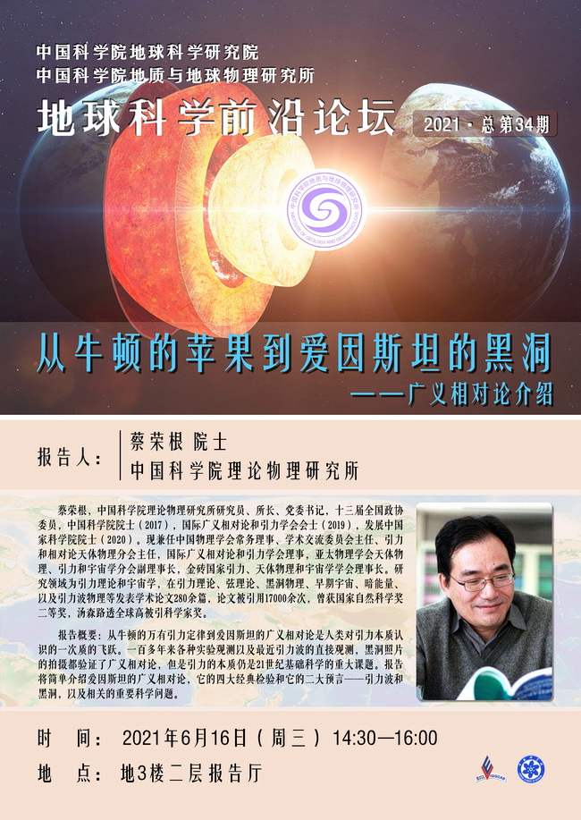 【6.16】地球科学前沿论坛:蔡荣根 院士