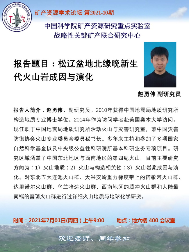 【7.1】矿产资源学术论坛:赵勇伟 副研究员