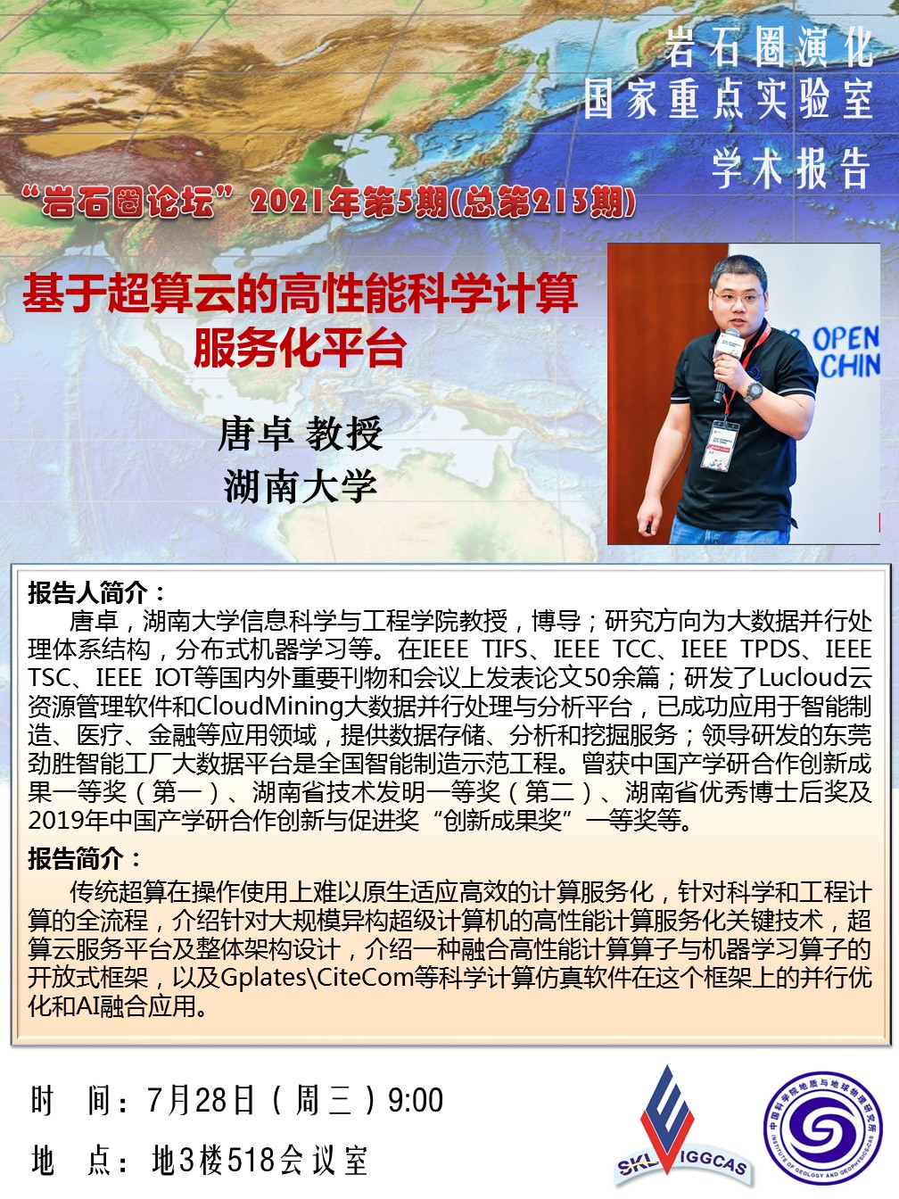 【7.28】岩石圈论坛:唐卓 教授