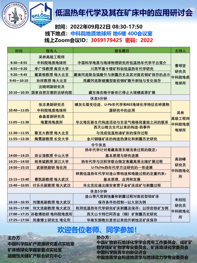 【9.22】低温热年代学及其在矿床中的应用研讨会