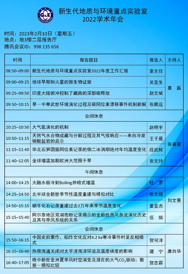 【2.10】新生代地质与环境重点实验室2022年度学术年会