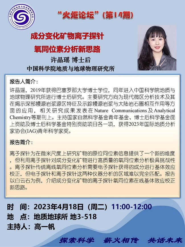 【4.18】火炬论坛·第14期:许晶瑶 博士后