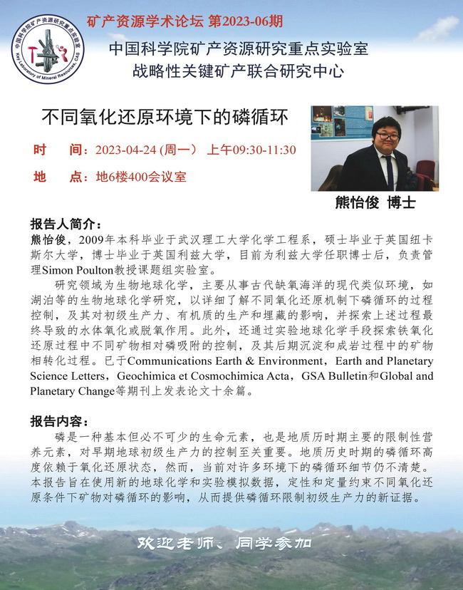 【4.24】矿产资源学术论坛·第6期:熊怡俊 博士