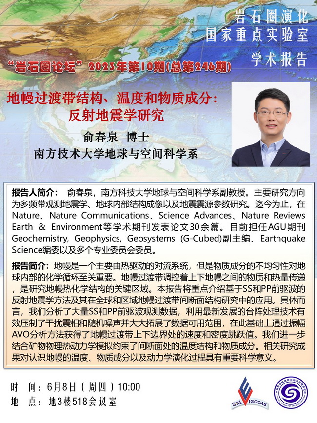 【6.8】岩石圈论坛:俞春泉 博士