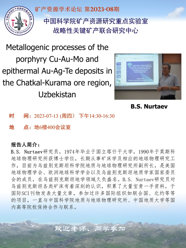【7.13】矿产资源学术论坛:B.S. Nurtaev 研究员