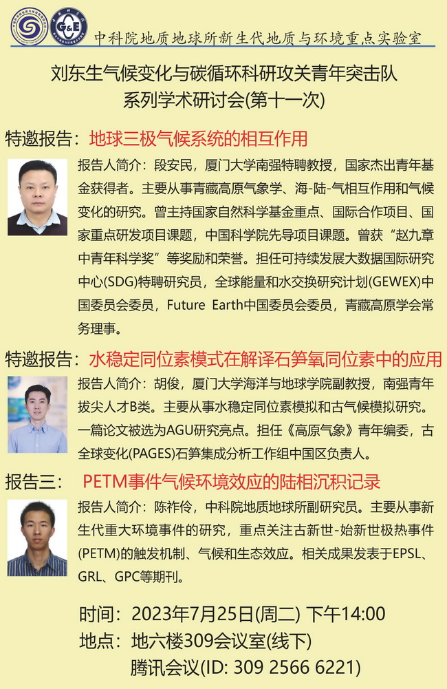 【7.25】刘东生气候变化与碳循环科研攻关青年突击队系列学术研讨会·第十一次