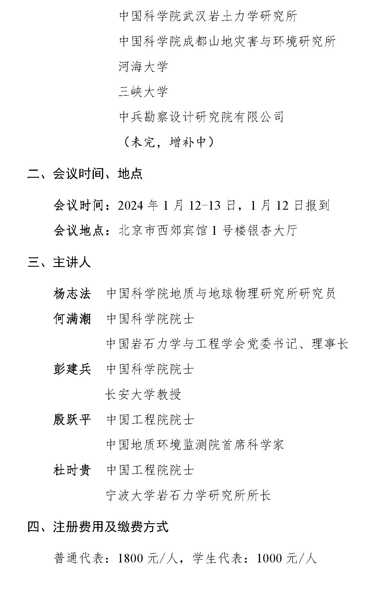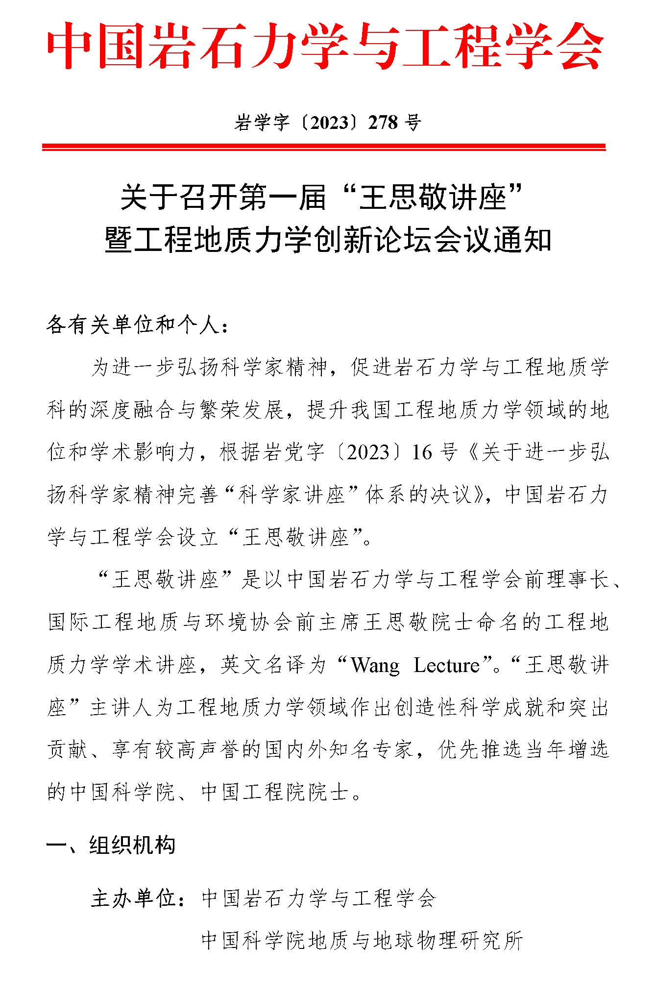 【1.13】第一届“王思敬讲座”暨工程地质力学创新论坛