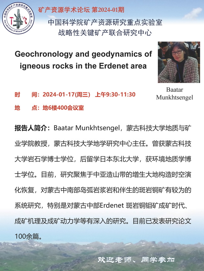 【1.17】矿产资源学术论坛:Baatar Munkhtsengel 教授