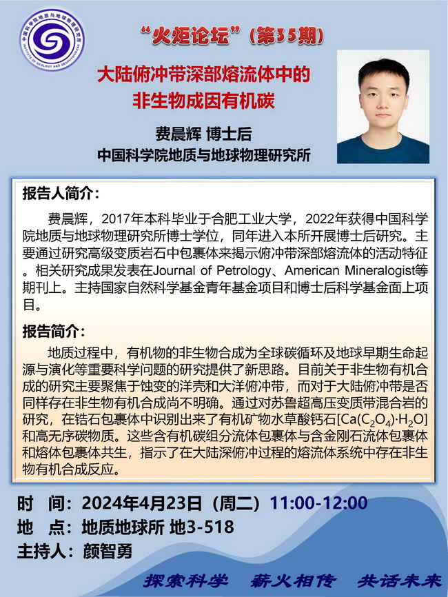 【4.23】“火炬论坛”·第35期:费晨辉 博士后