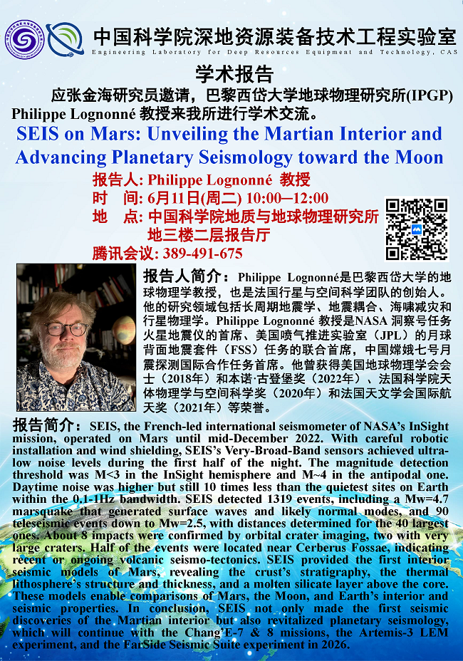 【6.11】深地装备室学术报告:Philippe Lognonné 教授