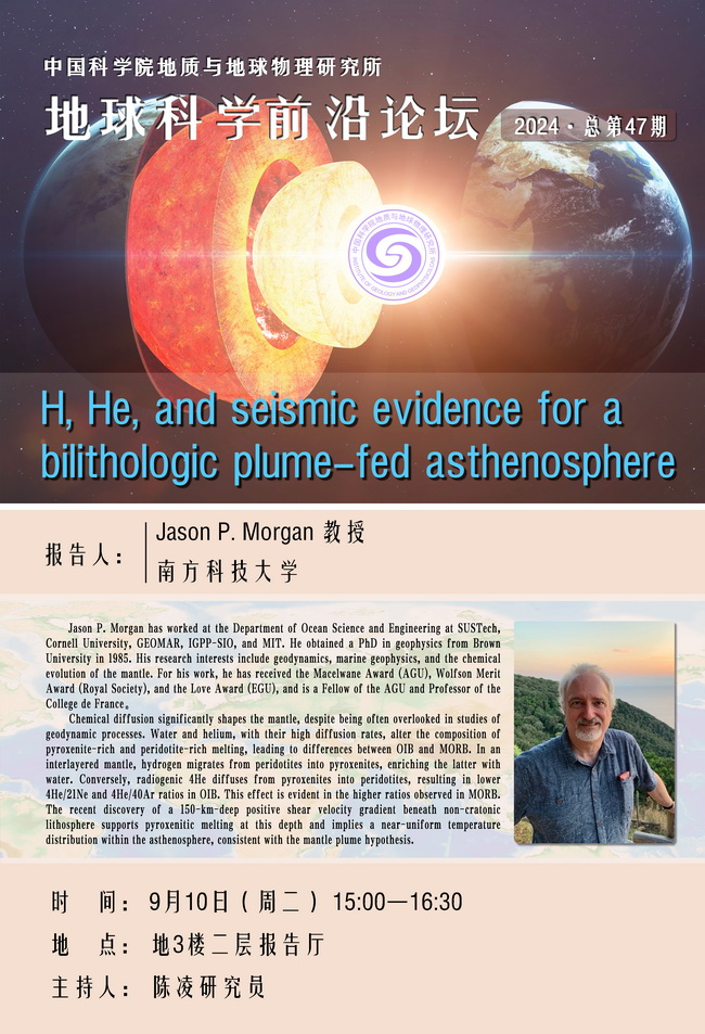 【9.10】地球科学前沿论坛:Jason P. Morgan 教授