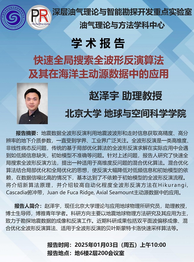 【1.3】油气中心学术报告:赵泽宇 助理教授
