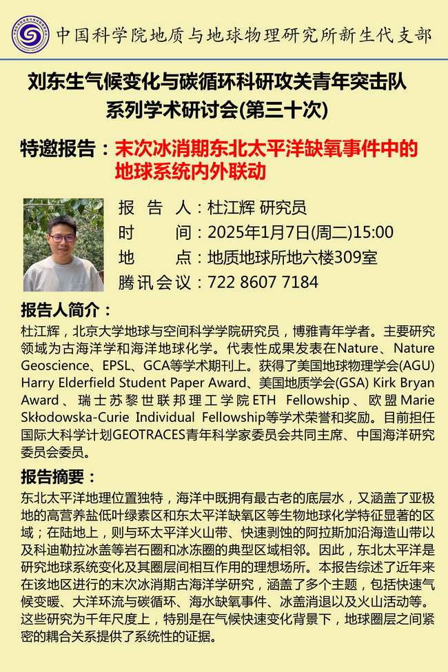 【1.7】刘东生气候变化与碳循环科研攻关青年突击队系列学术研讨会(第三十次)
