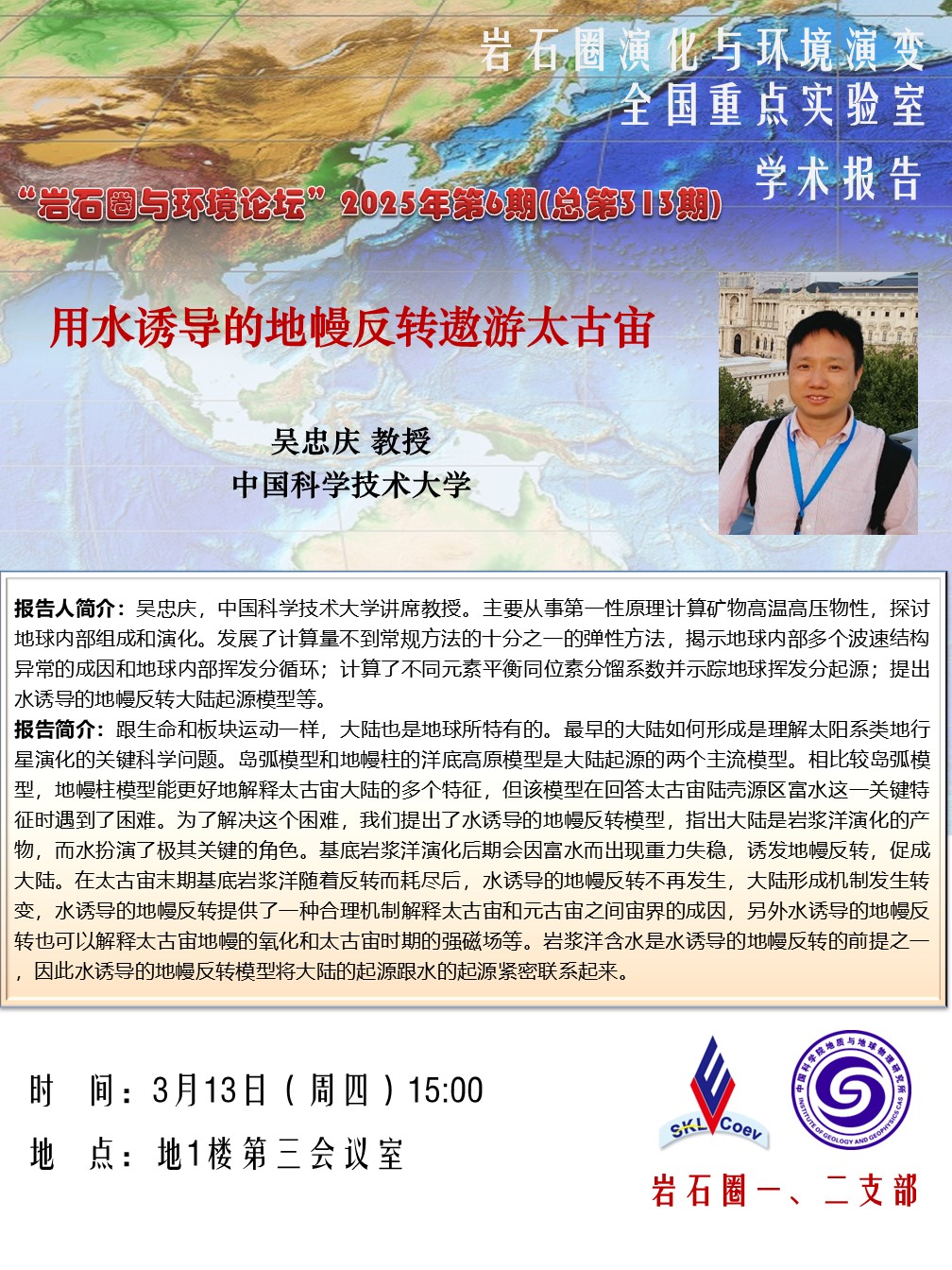 【3.13】岩石圈与环境论坛:吴忠庆 教授