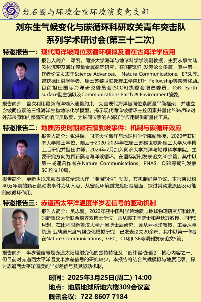 【3.25】刘东生气候变化与碳循环科研攻关青年突击队系列学术研讨会(第三十二次)