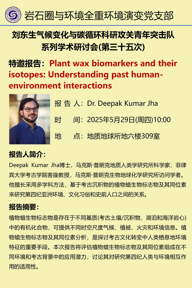 【5.29】刘东生气候变化与碳循环科研攻关青年突击队特邀报告:Dr. Deepak Kumar Jha