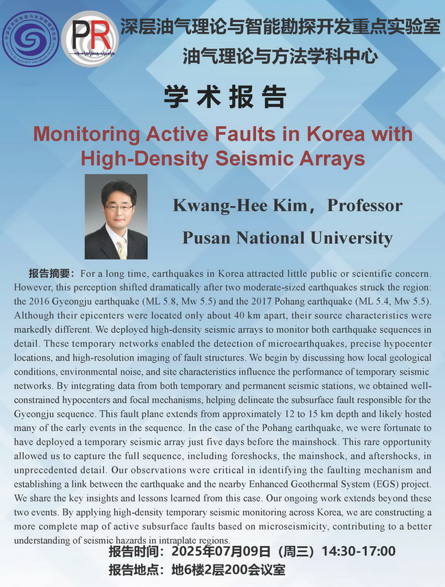 【7.9-10】油气学科中心学术报告:KimKwangHee 教授