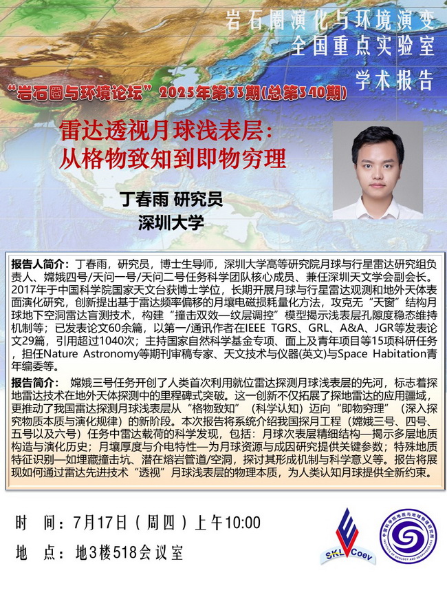 【7.17】岩石圈与环境论坛:丁春雨 研究员