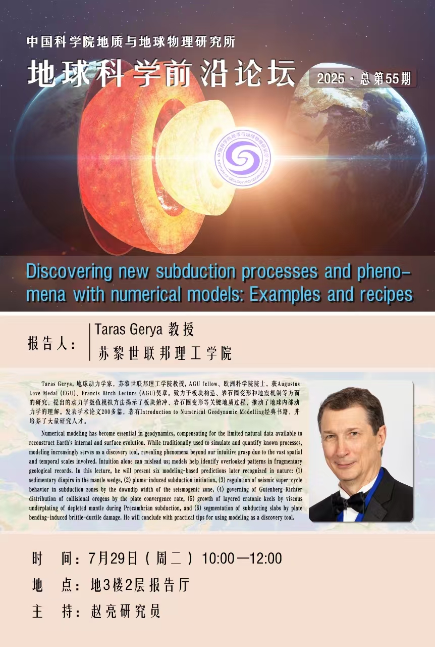 【7.29】地球科学前沿论坛:Taras Gerya 教授;Robort A Spicer 教授