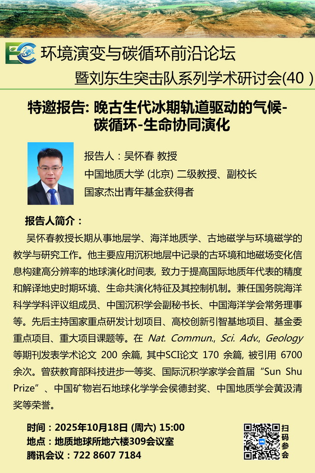 【10.18】环境演变与碳循环前沿论坛暨刘东生突击队系列学术研讨会:吴怀春 教授
