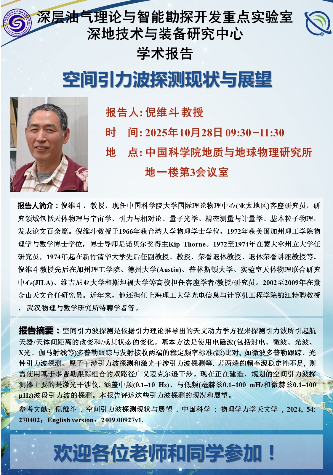 【10.28】深地装备研究中心学术报告:倪维斗 教授