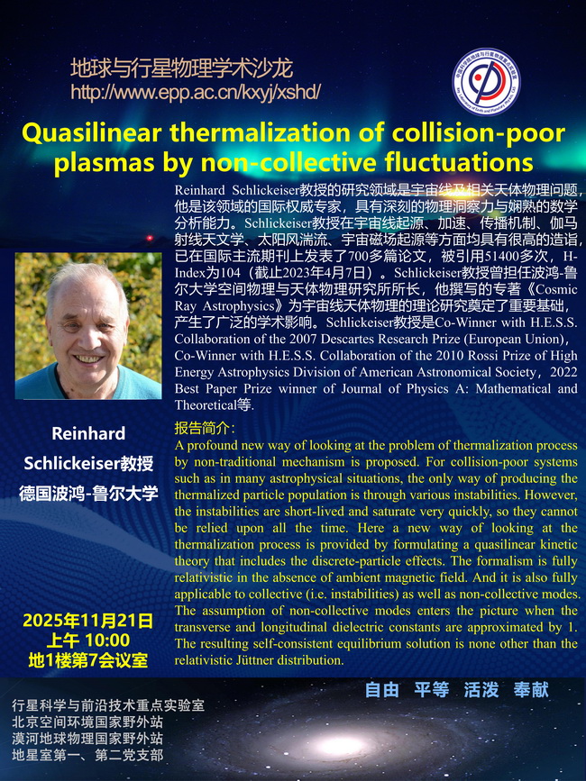 【11.17、21】地星沙龙:Reinhard Schlickeiser 教授