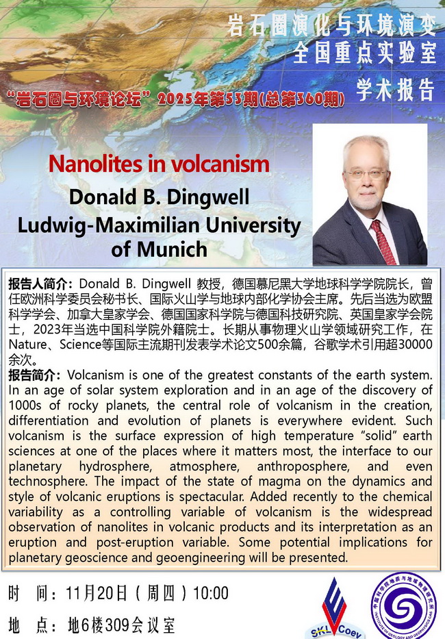 【11.20】岩石圈与环境论坛:Donald B. Dingwell 教授