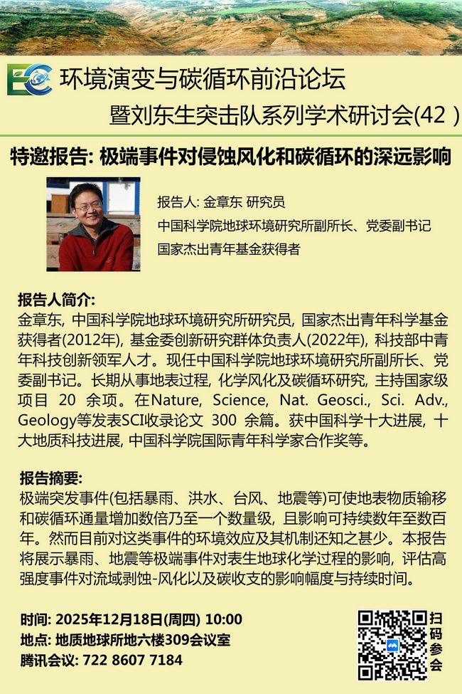 【12.18】环境演变与碳循环前沿论坛暨刘东生突击队系列学术研讨会:金章东 研究员