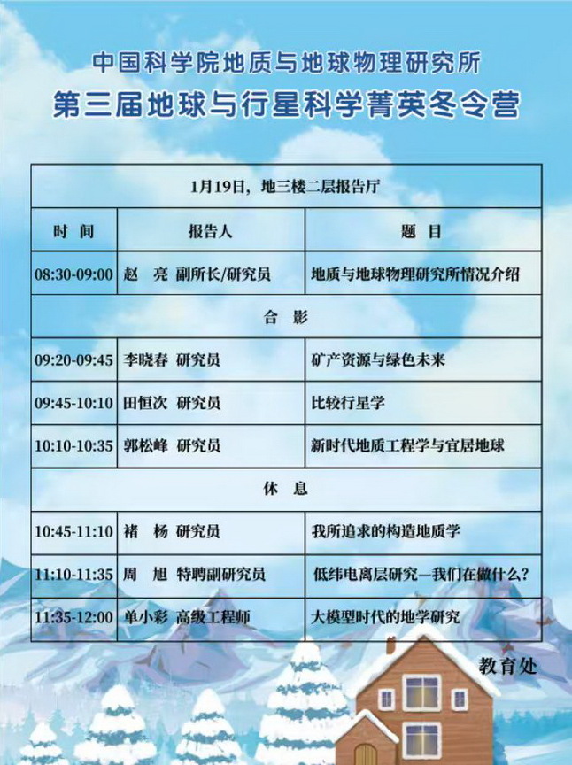 【1.19】地质地球所第三届地球与行星科学菁英冬令营